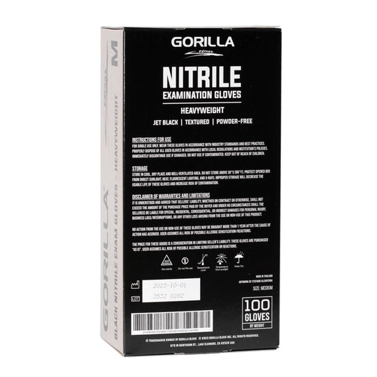 Black Heavyweight Nitrile Gloves (The Original Gorilla Nitrile Gloves) by Gorilla are the go-to for tattoo artists and piercers. The gloves are manufactured with fine grip textured fingertips and are made in compliance to industry standards. These gloves are lab and field tested to withstand pinhole defects, ensuring proper performance and unmatched protection to the wearer. The Gorilla signature black color of these gloves also helps with masking stains from blood, liquids, and pigment inks. Using an advanced polymer coating technique, these gloves also feature an improved exterior surface that provides secure grasp in handling tattoo and body piercing instruments. These gloves are easy to wear, exceptionally stretchy, and made from medical grade latex-free material.