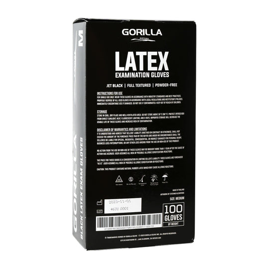 The industry's best black disposable glove. Gorilla's Black Latex Gloves are a favorite among tattoo artists, piercers, permanent cosmetic artists, and pretty much anyone who wears them. Designed and made with an ultra light material that promotes airflow throughout, these gloves are constructed to conform and fit perfectly, while still allowing your hands to breathe and feel cool during an intense tattoo session. Featuring a full textured surface for better grip, these black gloves not only look and feel great but also gets the job done right each and every time. Manufactured using an advanced chlorination process that helps reduce surface friction and tack on the interior of the glove, Gorilla's Latex Gloves are smooth, extremely durable, stretchy, and can be easily donned for any job or task. Try a pair today and see what all the hype is about!